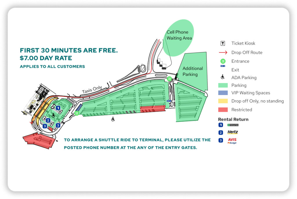 please utilize cell phone waiting parking lot Until your traveling party has luggage in hand and is waiting in front of terminal.